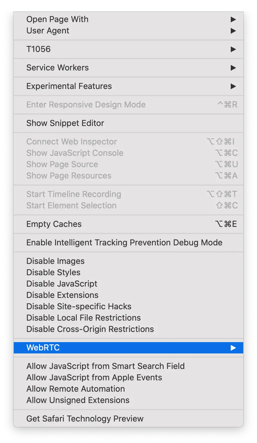 Wie kann ich WebRTC in Safari deaktivieren?