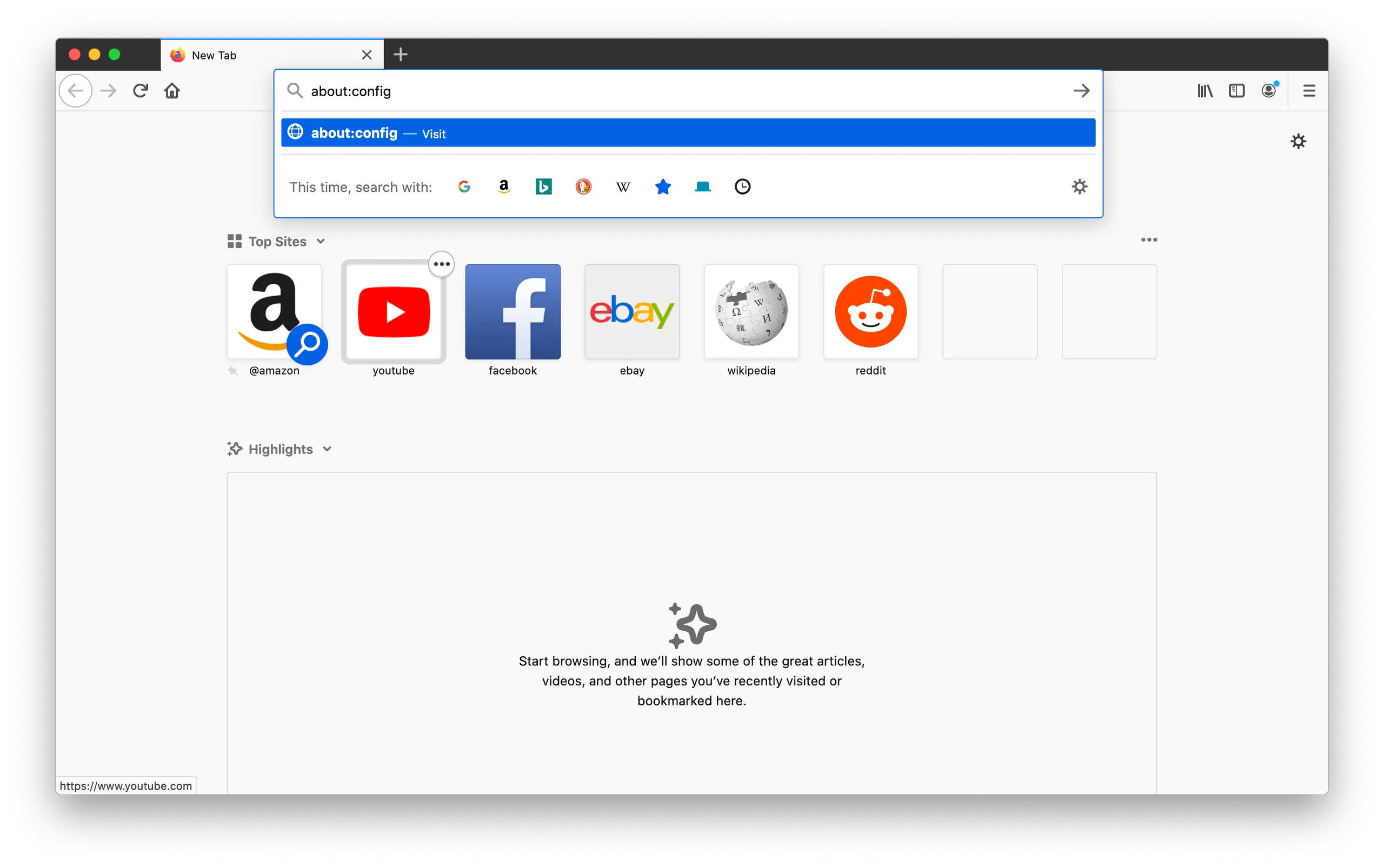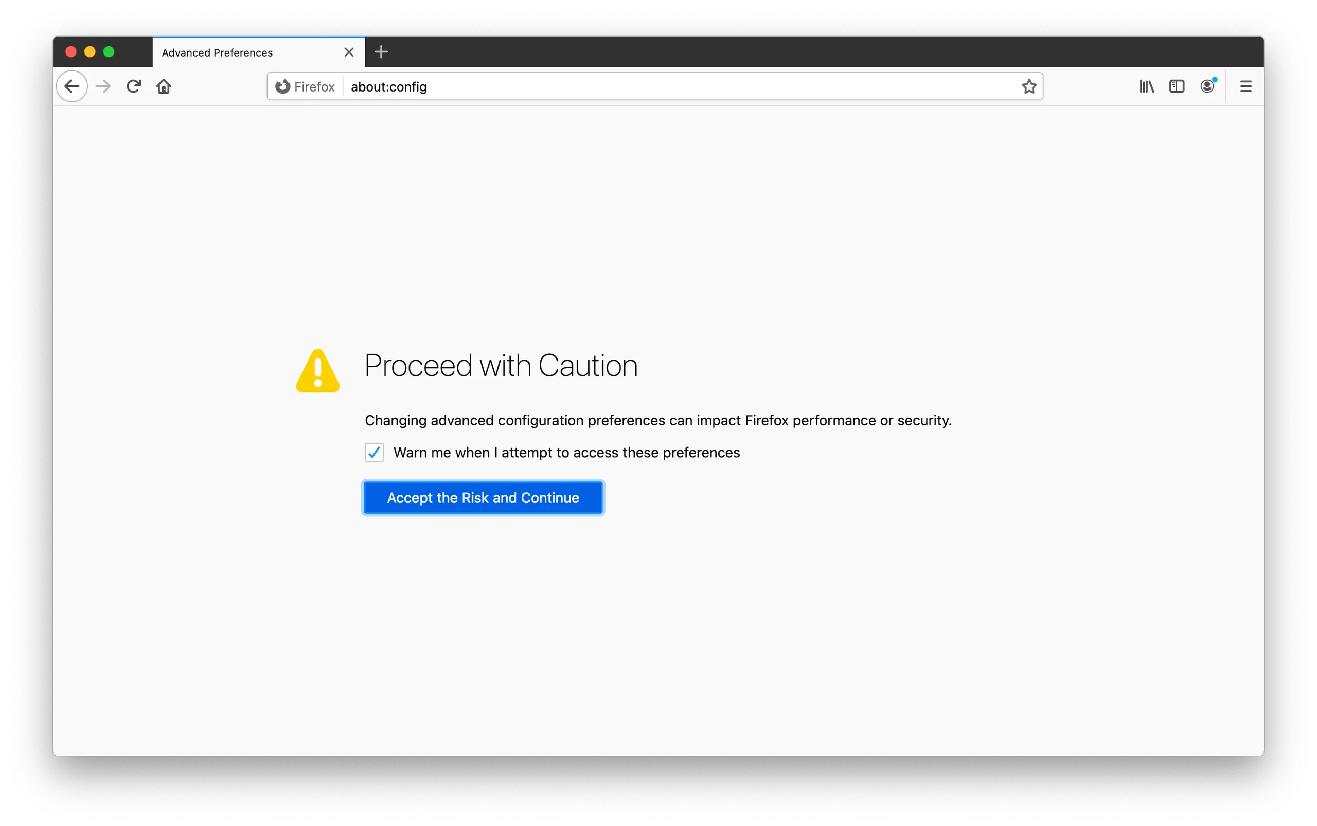 1. Tippe Folgendes in die URL-Leiste ein und drücke danach die Enter-Taste: about:config